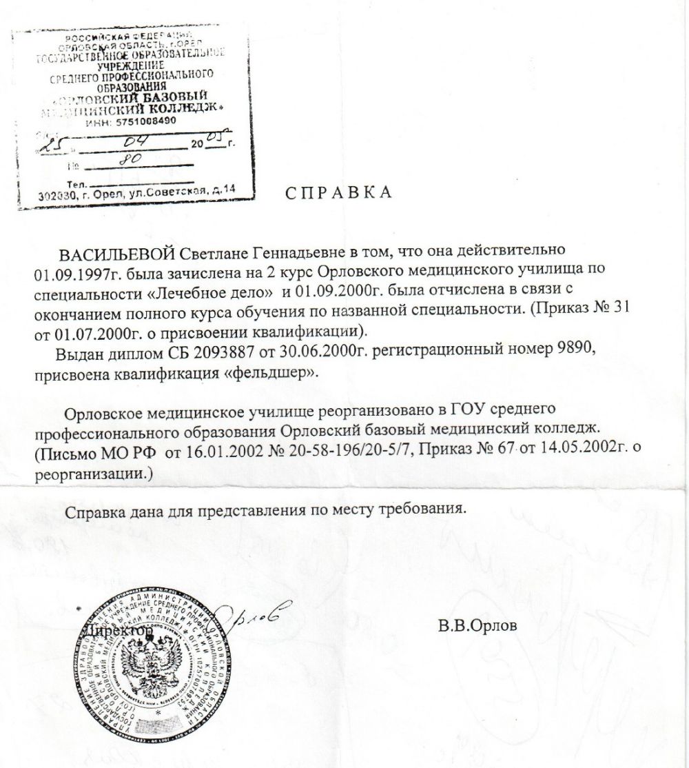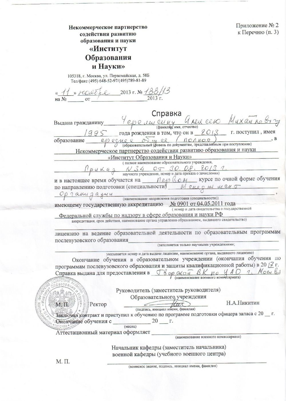 • Дополнительно: Справка об обучении в образовательном учреждении печатается по установленной форме в учебном заведение
