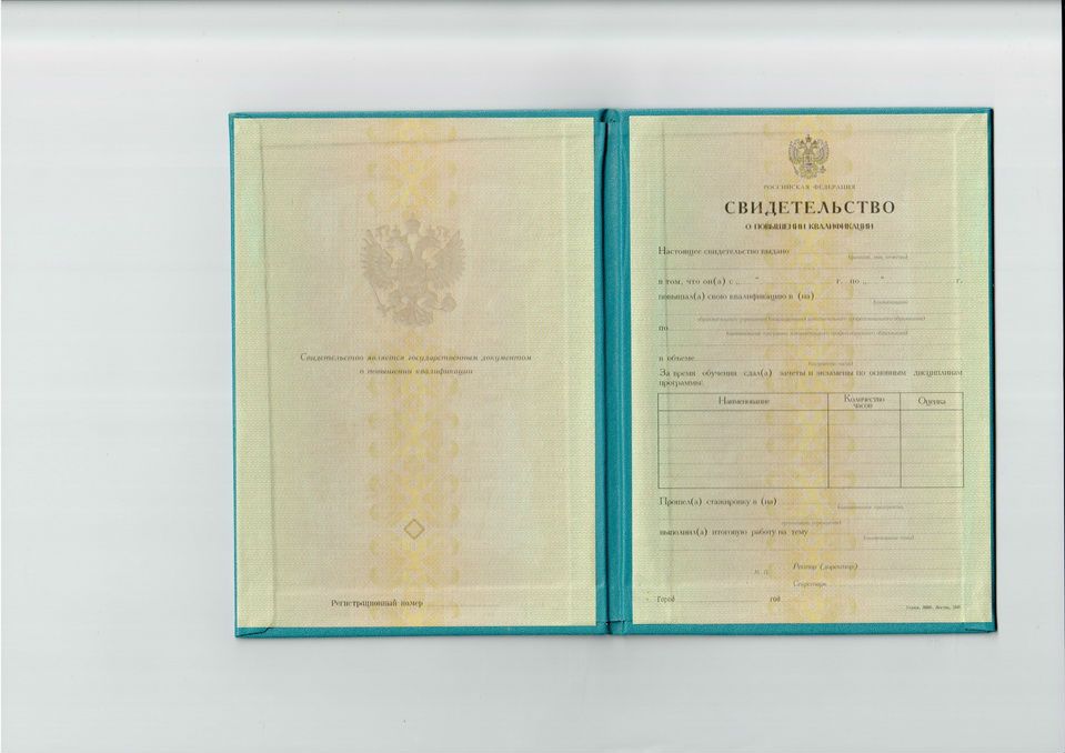 Получить документ о повышении квалификации можно после прохождения обучения по программе, продолжительность которой составляет 100-500 часов. Клиенты компании имеют возможность купить свидетельство о повышении квалификации до 1995 года, выполненное на оригинальном бланке. Изготовление и продажа документов – основная наша специализация, мы гарантируем быструю доставку и низкие цены.